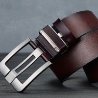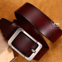 Men’s leather belt pin buckle cow genuine leather – Brown