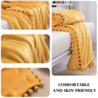 Flannel Blanket Solid Throw Blanket Pompom Fringe Lightweight Cozy Decorative Soft Throw Blanket for Bed Couches Sofa Offices