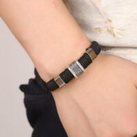 Gentleman Leather Titanium Steel Braided Clasp Bangle Bracelet for Men and Women