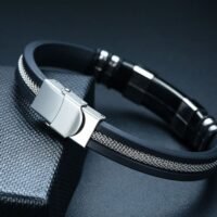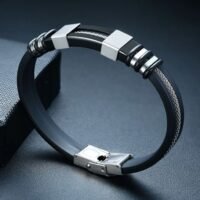 Stainless Steel Bracelet Men Wrist Band Black Stylish Casual Bangle